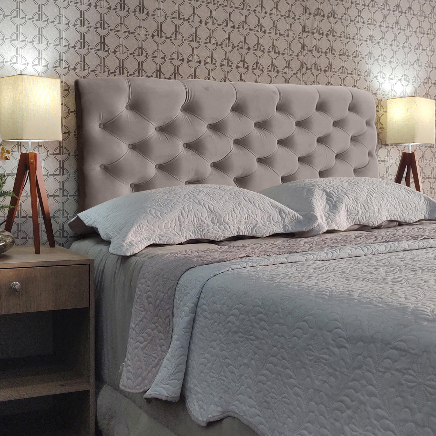 - Os objetos que ambientam as fotos não acompanham a cabeceira.