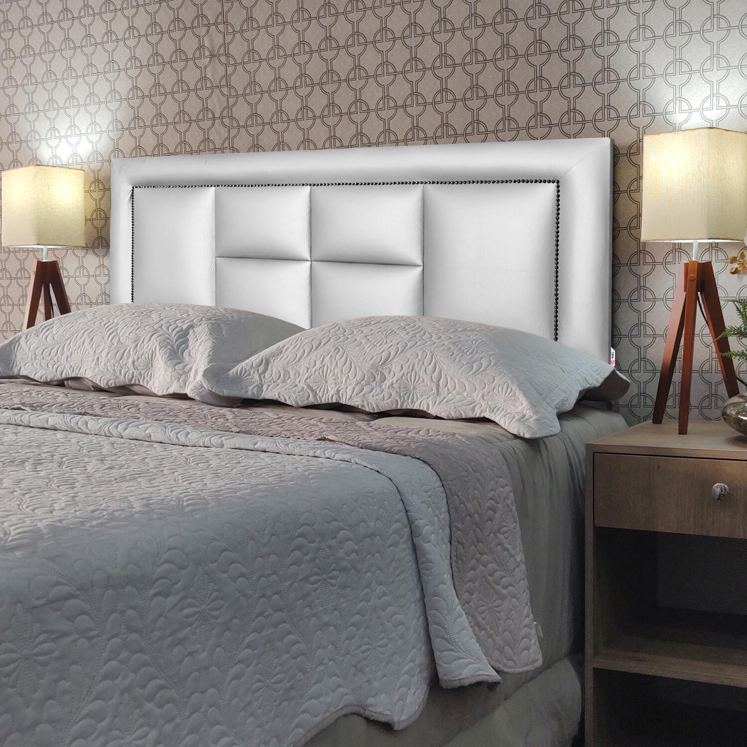 - Os objetos que ambientam as fotos não acompanham a cabeceira.