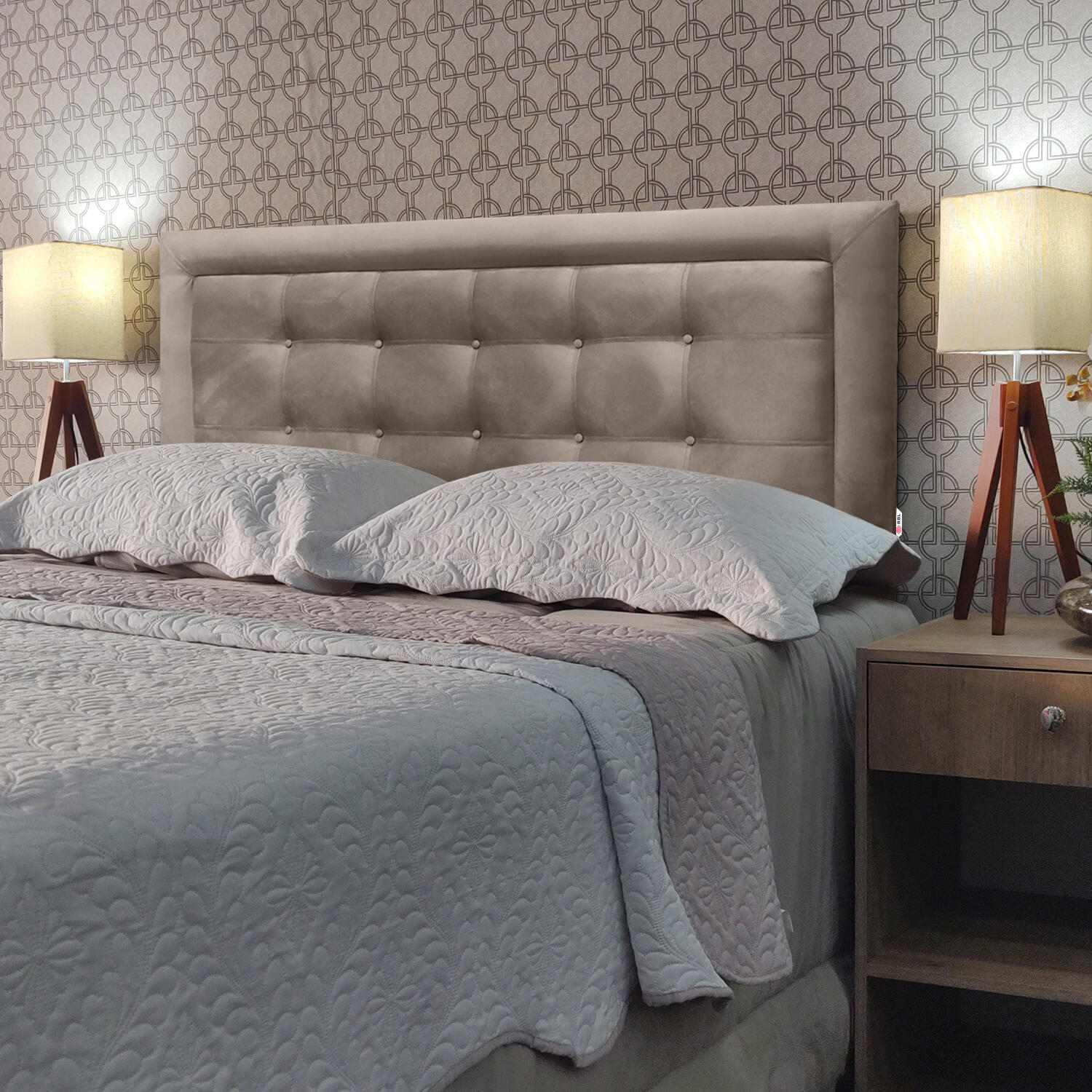 - Os objetos que ambientam as fotos não acompanham a cabeceira.